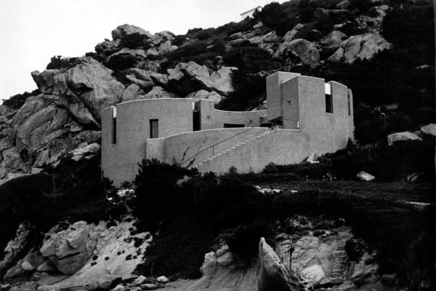Questa villa, di colore grigio, è un bunker poiché è isolata e protetta nella sua architettura quasi bellica, ma non per proteggersi da eventi di particolare violenza, ma semplicemente dall’impetuoso manifestarsi della natura, infatti il vento che in questa zona della Sardegna soffia in modo deciso, a volte violento. La casa dunque ha una doppia funzione, apre le sue porte e finestre verso il mare, ma sa proteggere i suoi abitanti dal vento che soffia da esso.