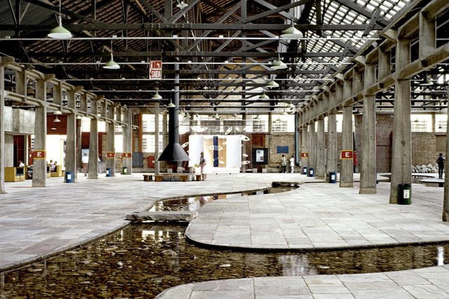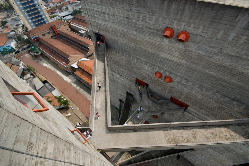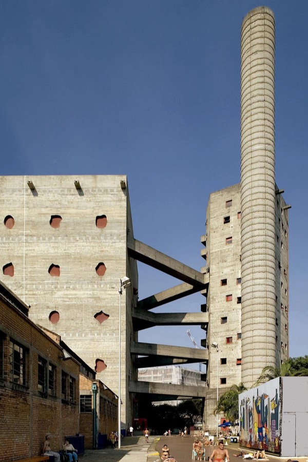 All’esterno, un’ampia zona aperta viene usata liberamente dai cittadini, anche per prendere il sole. Nel corpo dell’ex-fabbrica, interamente arredato con elementi progettati dalla Bo Bardi, il centro ospita una mensa pubblica, una biblioteca, un laboratorio, uno spazio espositivo e un teatro. Qui, due gradinate si guardano, l’una di fronte all’altra con il palcoscenico al centro; deve essere destrutturato anche il concetto di teatro, solitamente riservato a una certa categoria di utenti, o a essa comunque a essa associato. Per la Bo Bardi l’architettura non poteva non essere socialmente impegnata e non stabilire una democrazia spaziale: né porte, né muri all’interno del SESC, dove si assiste a un esperimento socialista, come commentò l’architetta stessa, il cui successo testimonia quanto siano state acute le sue intuizioni e il suo approccio al passato.
