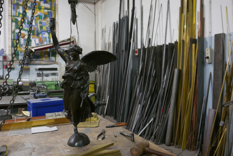 Nel laboratorio saltano fuori qua e là oggetti speciali per la loro unicità e storia, come un prototipo in legno della maniglia del portone di ingresso della Pinacoteca di Brera, realizzato su disegno di Gregotti e rifinito poi su indicazioni dello stesso architetto. Su un tavolo, invece, una statua in bronzo che sta venendo restaurata e, di fianco, la struttura di una piantana, ancora da rifinire. Tre manufatti oggetto di lavori completamente diversi tra loro. Prototipazione, realizzazione e restauro, tutto nella bottega Bagatti, dove si respira un’atmosfera ricca di amore e dedizione a un lavoro tanto nobile quanto fondamentale per la realizzazione di progetti di architettura e design e per la conservazione delle opere d’arte, a volte ben nascosto dietro la fama di progettisti e artisti.