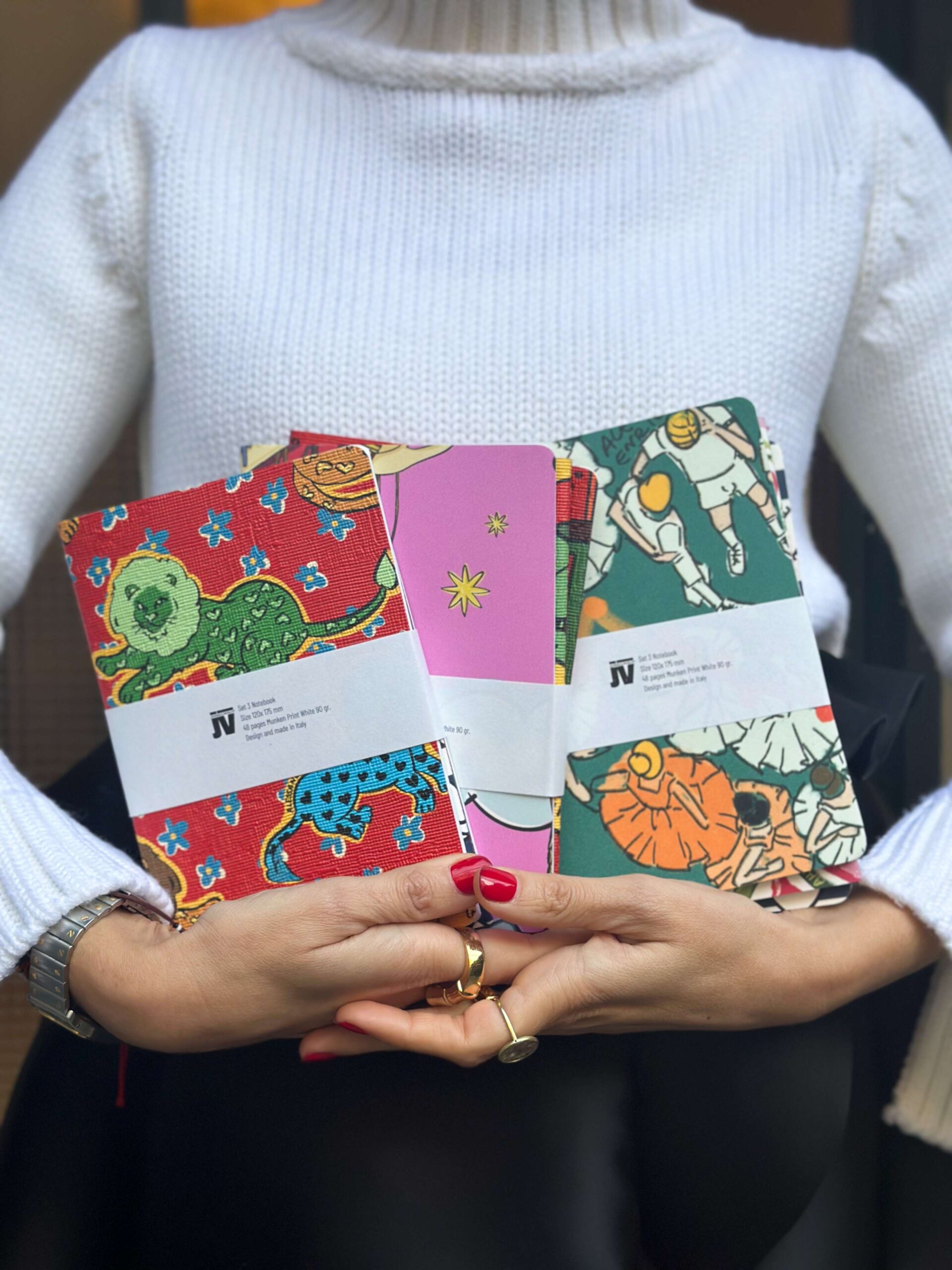 Texture brillanti e dai colori vivi, da portare ogni giorno con noi al lavoro o durante i nostri viaggi. Realizzati utilizzando gli scarti di produzione delle carte da parati della collezione EnriquezLand, i notebook da viaggio Jannelli&Volpi, e grazie al design di Alessandro Enriquez, presentano grafiche coloratissime, luminosi e vivaci. Un inno di gioia ricco di simboli d’amore per i regali alle persone a cui teniamo di più, con un occhio alla sostenibilità che non guasta mai.