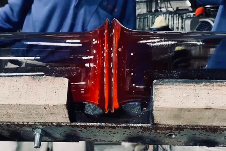 Il processo di produzione prevede innanzitutto la soffiatura di due cilindri che vengono poi sottoposti ad un processo di fusione: sarà proprio la forza impressa durante questa fase che permetterà di ricreare la forma ad anello tipica delle canne di bambù.