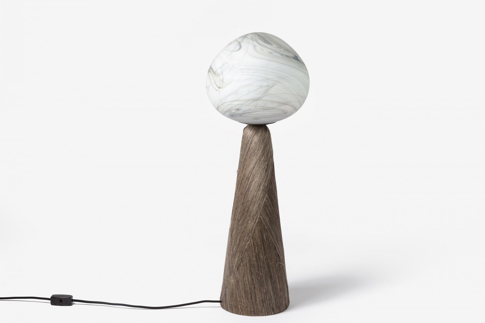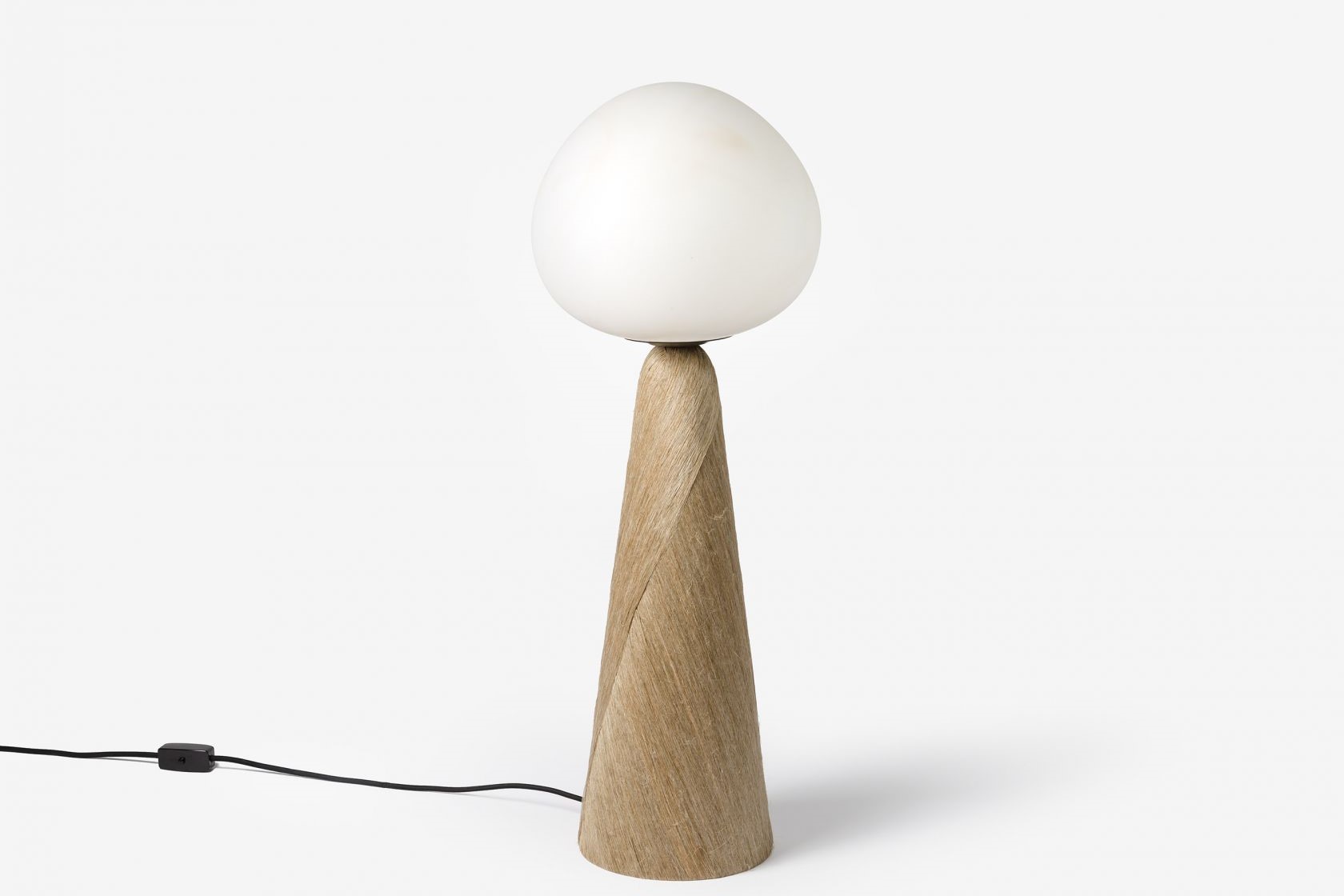 Lo studio francese di design e architettura d’interni di Constance Guisset ha realizzato, in serie limitata di soli 14 pezzi, Zacatecas, una lampada composta da una sfera che sovrasta una morbida silhouette geometrica. La base è avvolta in una veste di lino, che si abbina alla finitura della sfera e funge da drappeggio.