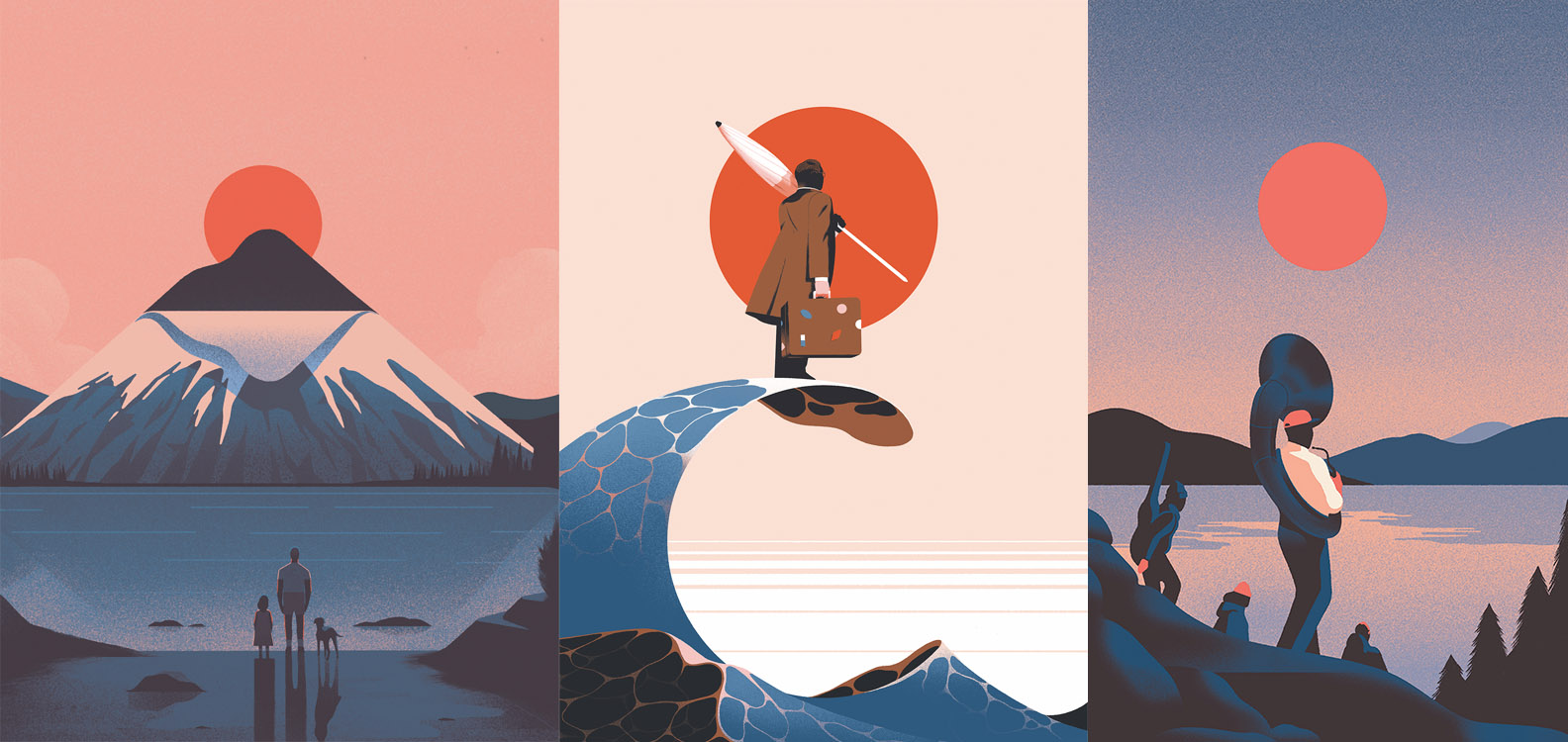 Il suo lavoro distintivo può essere visto in un’ampia gamma di pubblicazioni come riviste, libri e poster. Il cielo stellato che si apre come un sipario per poter volare verso il sole a bordo di un aeroplano, una barca a vela che naviga verso un’isola volante e poi il sole al tramonto in molteplici versioni suggestive come quelli reali. Ho deciso, se i miei sogni potessero essere illustrati, avrebbero il tratto di Sebastien Plassard.