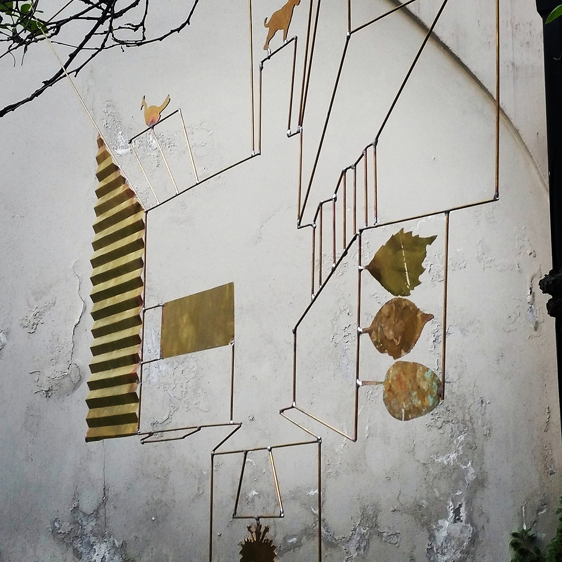 Le sculture sono composte da foglie e riccioli in ottone: la foglia d’oro è la nascita della principessa che crescendo perde la purezza intaccata dalla vita terrena ed inizia ad arrugginirsi fino alla trasformazione della foglia in una forma rigida, causata dall’aumentare dell’infelicità. Ciò porta infine la principessa a chiedere aiuto alla luna e qui la foglia è per metà nera e per metà oro, la metà che ancora rappresenta la speranza.