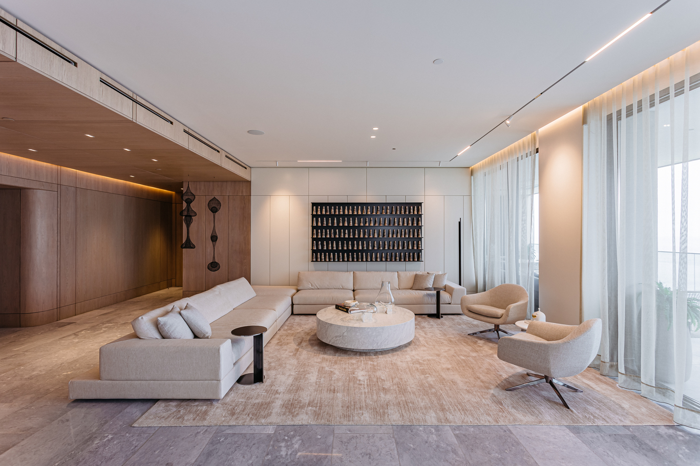 The Residence Upper East Tower 2300, an epitome of luxurious living, showcases Forza Creativa’s mastery in interior design. The apartment, designed as a sanctuary in the heart of a bustling Latin metropolis, embodies harmony and peace. With a tasteful color palette, warm monochromatic tones, and meticulous attention to detail, the interior design reflects a commitment to creating a serene and welcoming environment.