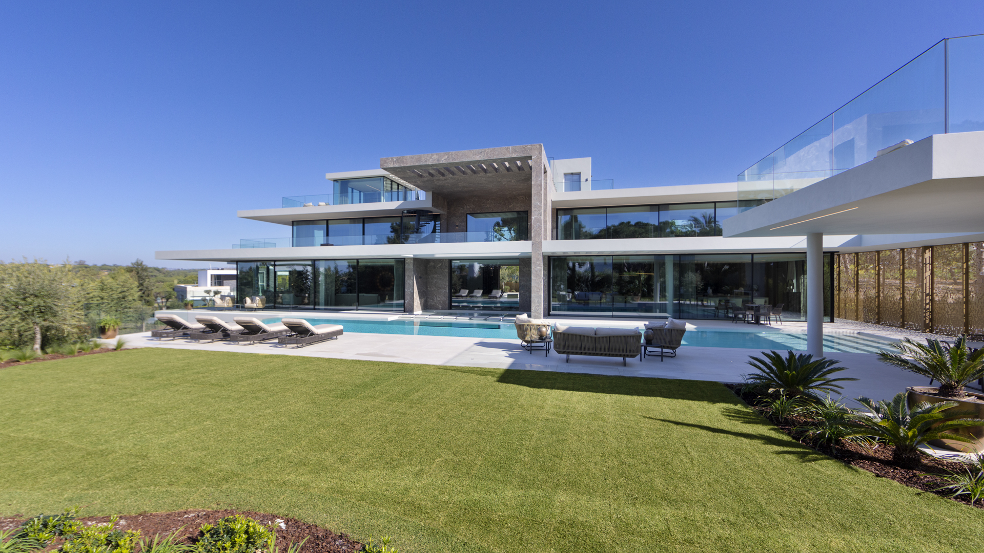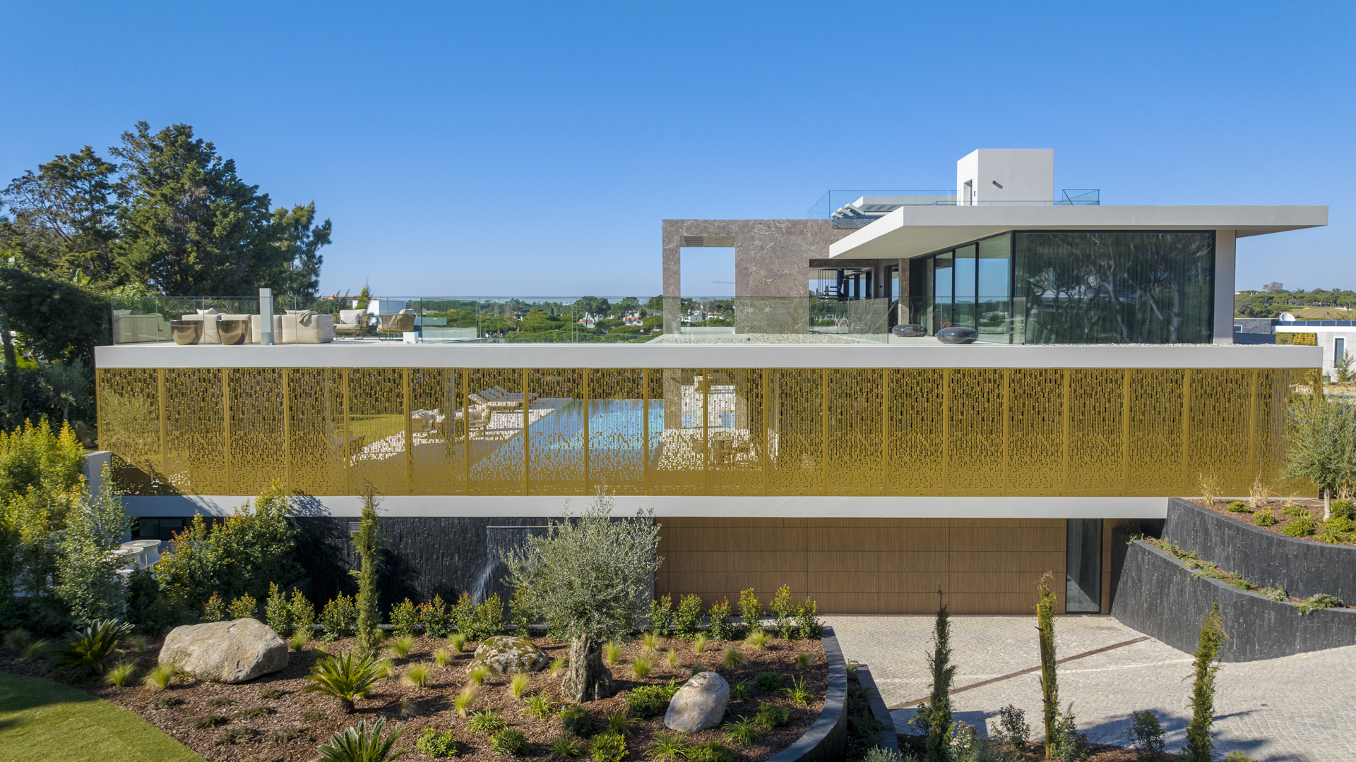 The recognition of JSH Algarve’s outstanding achievements is a testament to their unwavering dedication to excellence in luxury villa architecture. The award-winning project, Villatura, situated in the beautiful and sought after Quinta do Lago area of Almancil, Portugal, showcases an exquisite blend of contemporary design and luxurious amenities. This magnificent property boasts two stunning outdoor swimming pools, including a remarkable 20-meter long pool, complemented by elegant water features. With an indoor swimming pool and a rooftop pool, residents can indulge in relaxation while enjoying breathtaking views of the ocean. The opulence continues with a spa, cinema, and a myriad of other lavish features, creating an unparalleled living experience in the heart of the Algarve.