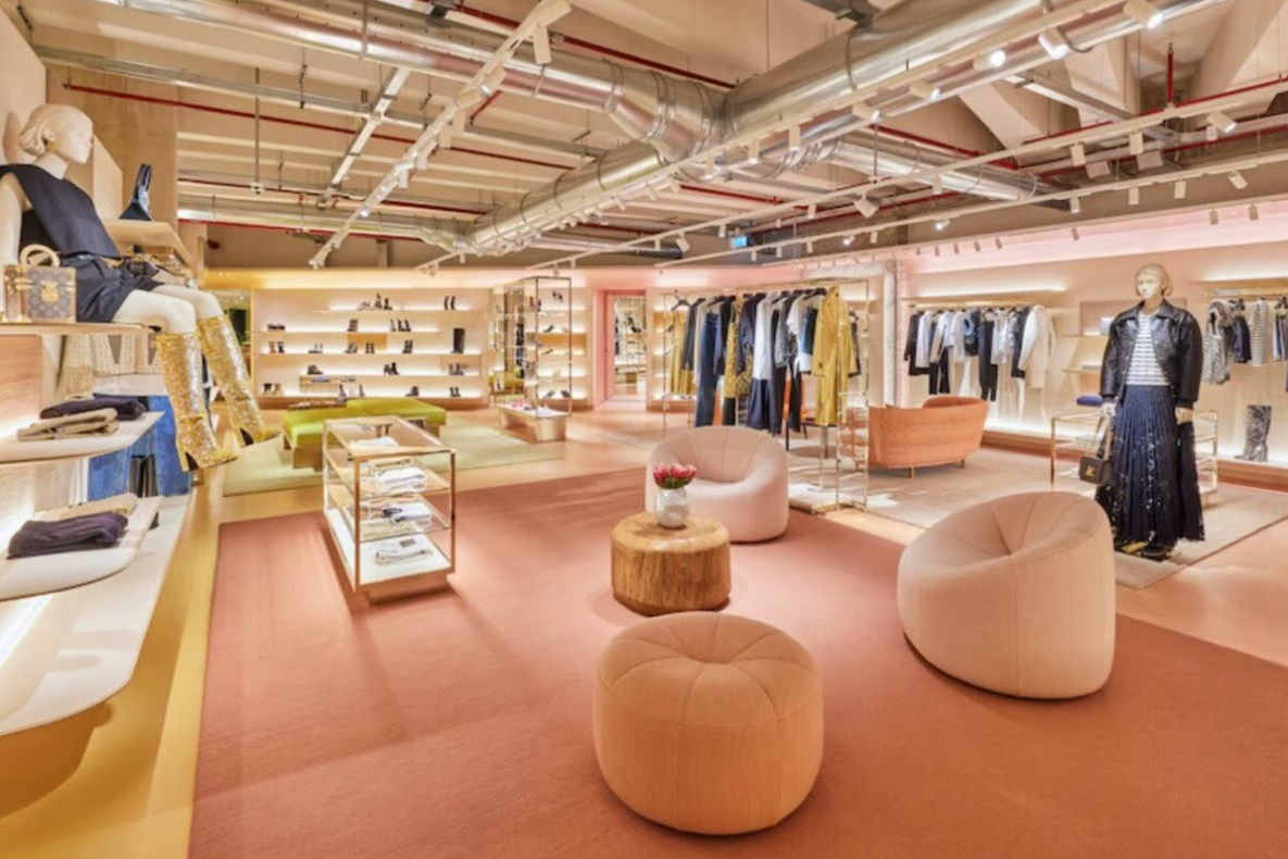 Qui a farla da padrone è l’universo femminile, anche se l’allestimento attira l’attenzione quasi più delle collezioni della griffe, rubando la scena ad abiti haute couture, stivali glitterati e accessori logati. I pois irregolari sparpagliati qua e là sul tappeto giallo non lasciano via di scampo. L’invito è esplicito: non resta che salire al piano superiore.